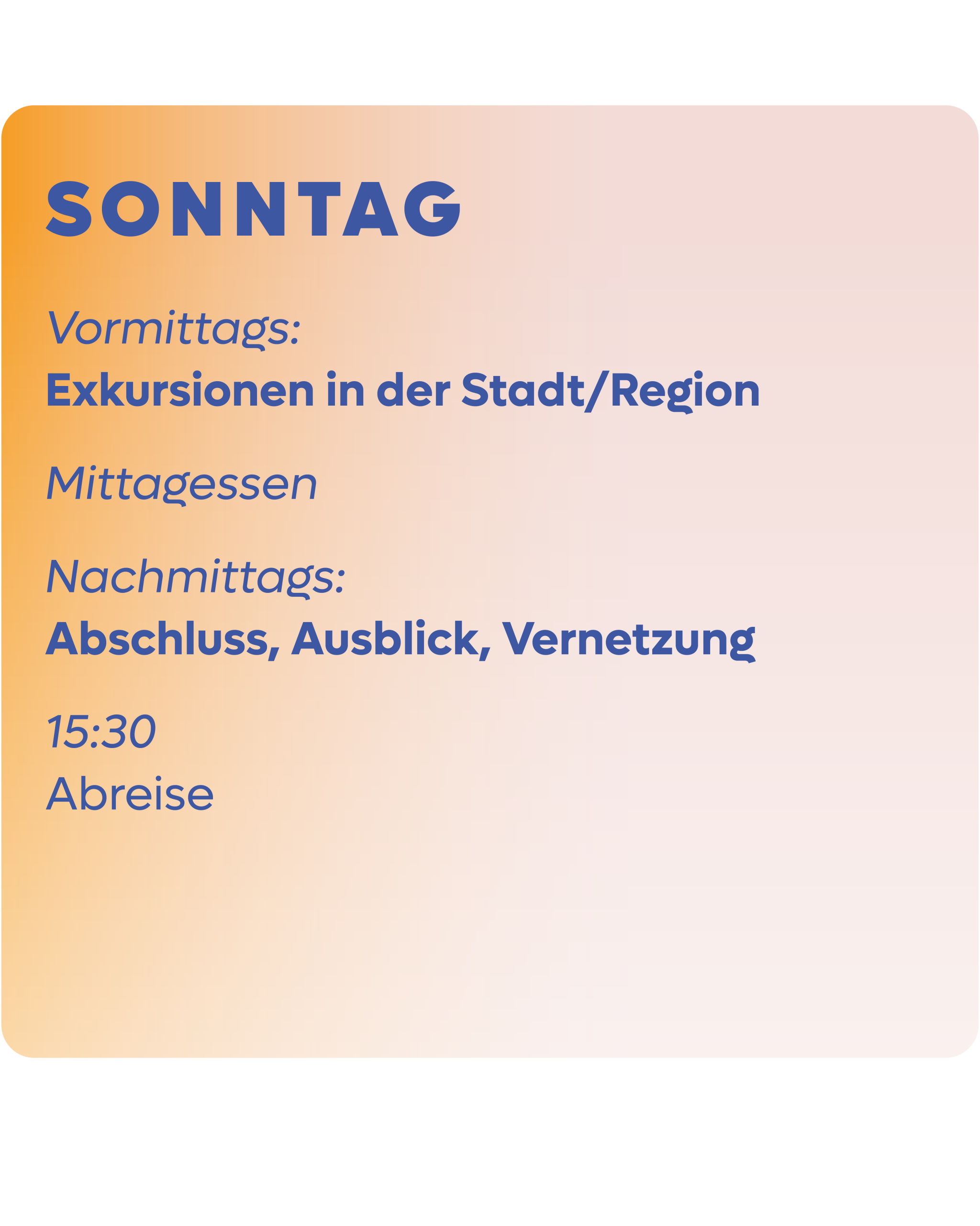 Da die Plätze begrenzt sind, bitten wir um eine Voranmeldung bis 21. Oktober 2025. Wir informieren die ausgewählten Teilnehmenden anschließend über die finale Zusage.