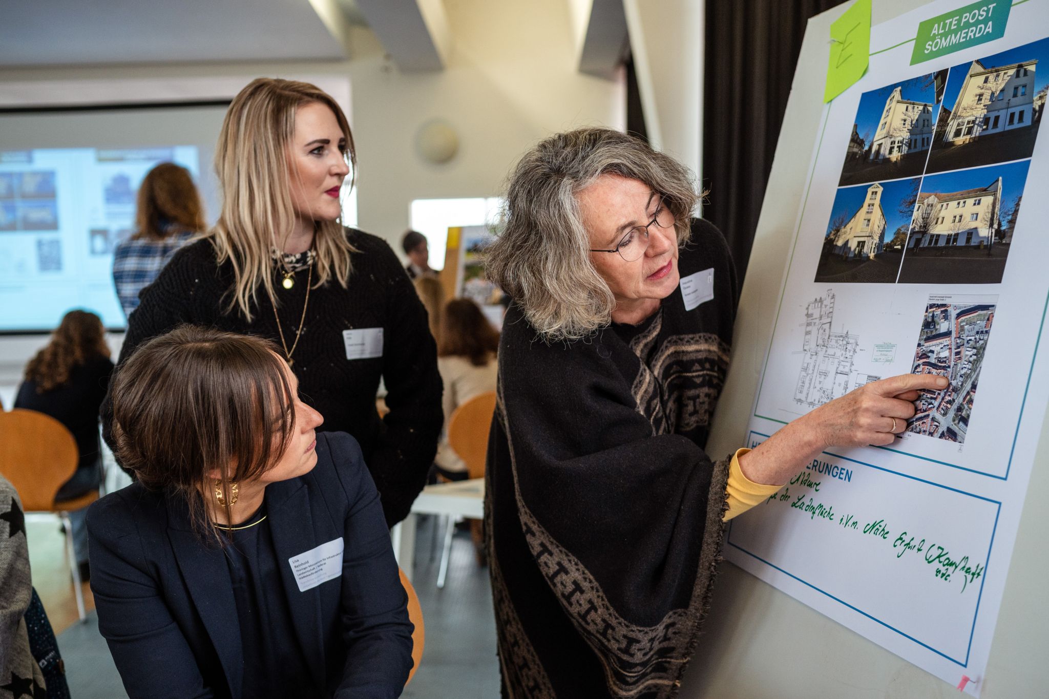 Leerstand ist und bleibt in Thüringen ein großes Thema. Der Rahmen der Transferveranstaltung bot für alle Beteiligten dabei die Möglichkeit sich konstruktiv mit dem Thema Leerstandsaktivierung zu beschäftigen, Erfahrungen auszutauschen und kreative Lösungsansätze an konkreten Beispielen aus den teilnehmenden Kommunen zu entwickeln. Gearbeitet wurde dabei in Kleingruppen, in denen sich Teilnehmer*innen aus Verwaltung und Planung mit Berater*innen aus der Zivilgesellschaft mischten.