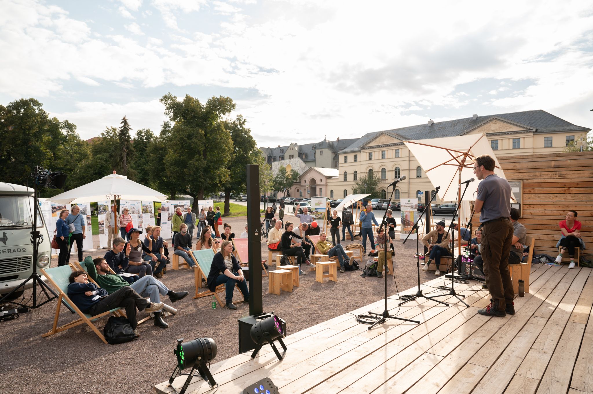 Am Nachmittag fand in Kooperation mit der Klassik Stiftung Weimar ein Vernetzungsprogramm im Sprachlabor vor dem Stadtschloss statt. Dort konnten Interessierte Informationen zur Projektgründung erhalten, sich Projekte über die Grenzen Weimars hinaus ansehen und ins Gespräch kommen. Den Abschluss machte eine Gesprächsrunde auf offener Bühne zum Thema „Fehlerkultur & schöner Scheitern“.
