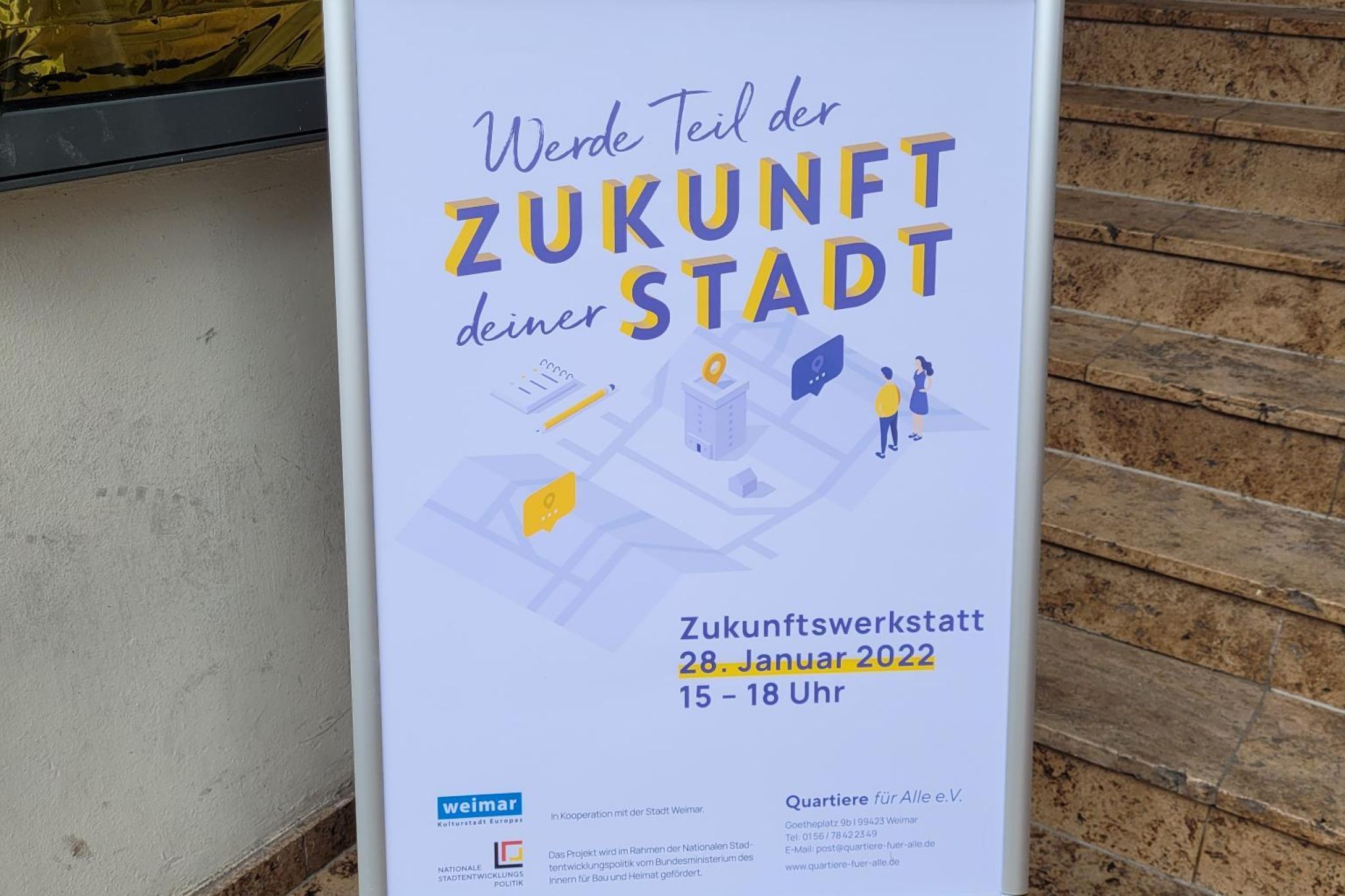 Unter dem motivierenden Slogan "Werde Teil der Zukunft deiner Stadt!" wurde in Zusammenarbeit mit der Stadt Weimar eine Veranstaltung ins Leben gerufen, die Bürgerinnen und Bürger einlud, ihre Visionen für das Quartier zu teilen. Im Rahmen dieser Initiative konnten Quartiersfonds in Höhe von insgesamt 5.250€ an engagierte Weimarer und lokale Initiativen vergeben werden. Diese Veranstaltung markierte den Auftakt des ersten Zukunftscampus Weimar, zu dessen Rahmen noch eine Reihe an Veranstaltungen der Zukunftswerkstatt folgen sollten.