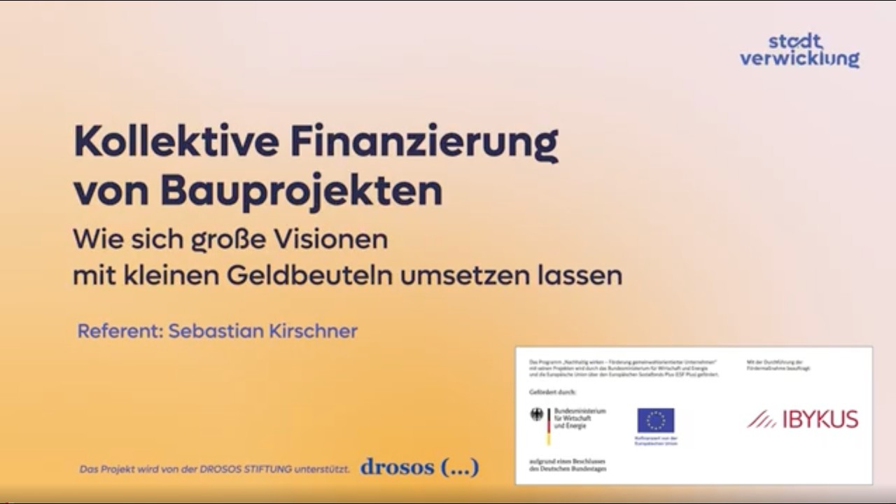 Nach dem Workshop könnt ihr eine erste Finanzierungsstrategie für euer Projekt entwickeln. Ihr versteht die verschiedenen Finanzierungsbausteine, kennt die Vor- und Nachteile unterschiedlicher Rechtsformen und wisst, wie ihr systematisch vorgehen müsst, um euer kollektives Bauvorhaben erfolgreich zu finanzieren.